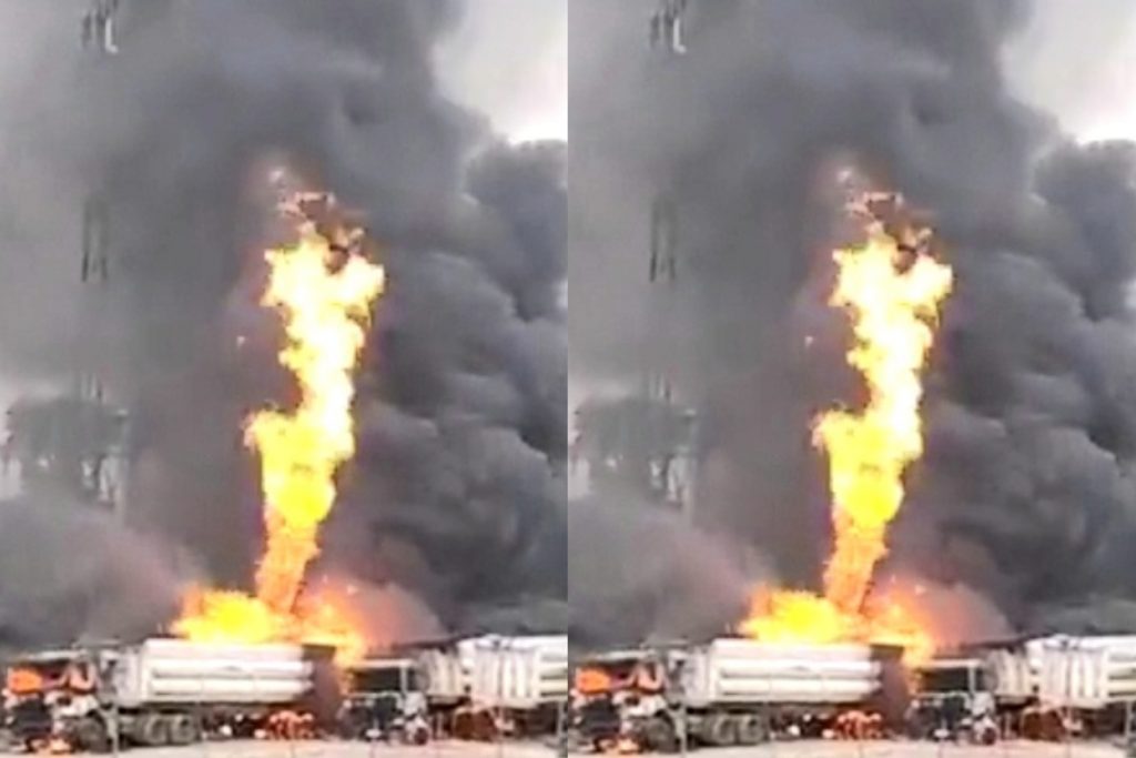Reports from the axis said people scampered for safety as the fire raged and affected some other trucks parked at the scene.