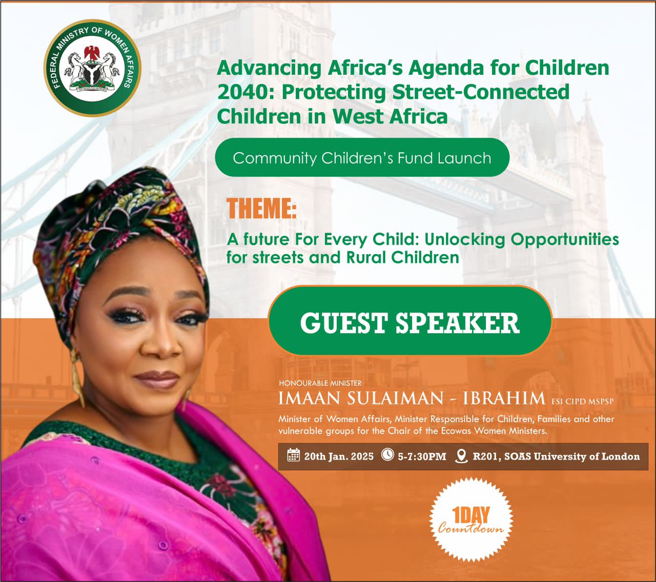 At the SOAS University of London event, Hon. Imaan Suleiman will share her insights on the importance of safeguarding children’s rights and promoting their well-being.