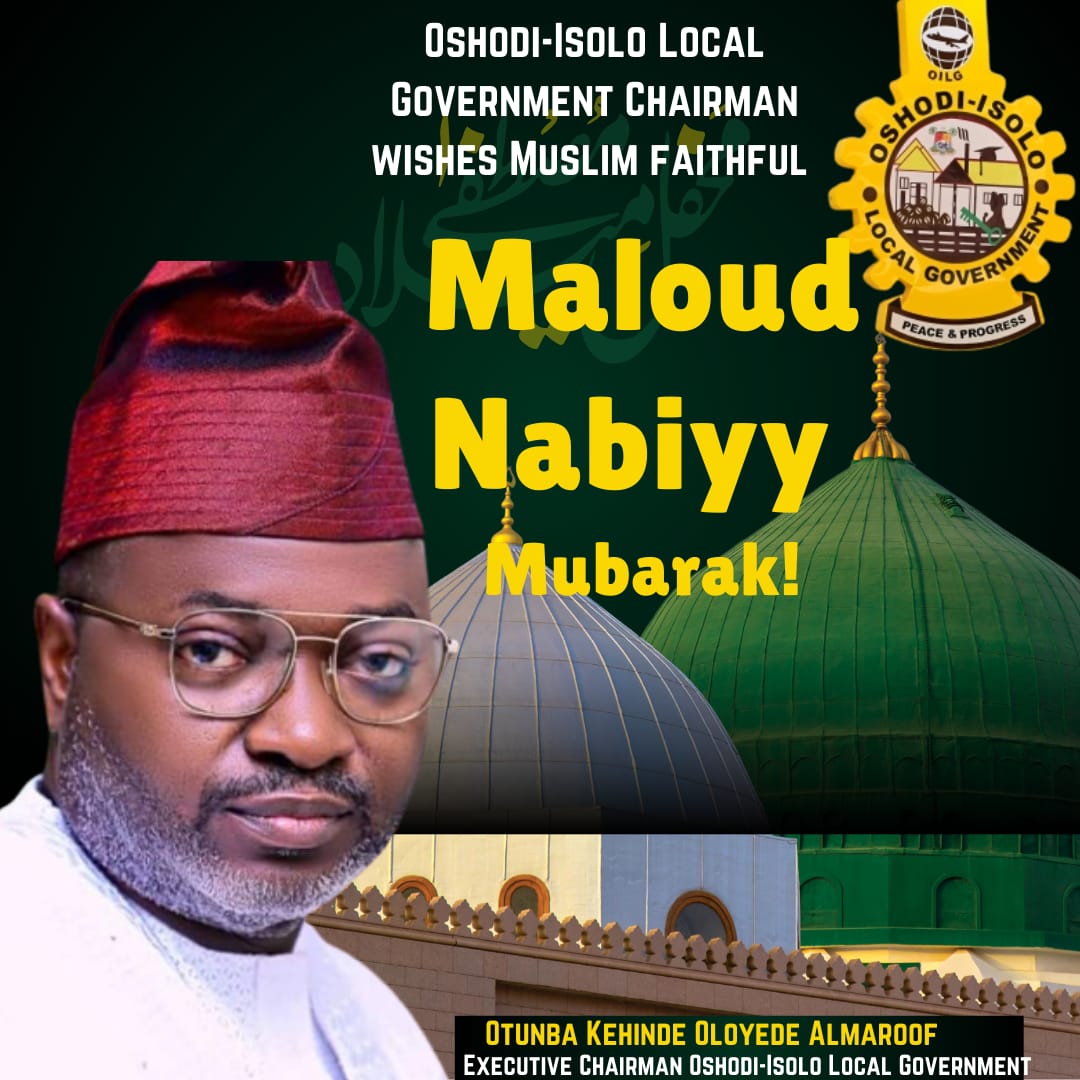 The Executive Chairman of Oshodi-Isolo Local Government, Otunba Kehinde Almaroof Oloyede has joined the Muslim Ummah all over the country and the world at large to celebrate 2024/1446AH Maloud Nabiyy, which signifies the day prophet Muhammad (peace be upon him) was born.